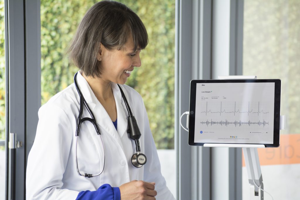 “We sought a telemedicine solution that was high quality, easy to use, and cost-effective. The Eko stethoscope with an iPad Pro on a Tryten cart helped make that possible.” Paul R Soto, Director of Information Technology, UR Medicine Home Health Care.